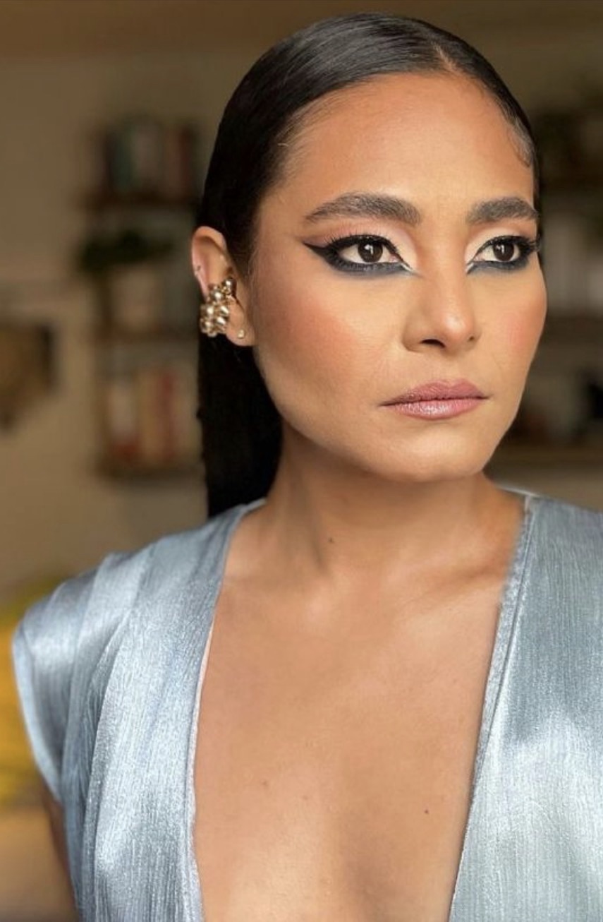Mabel Cadena’s eye makeup is not about trends. It’s about structure. It’s graphic without being cold, dramatic without being try-hard, and powerful without screaming for attention. Her eyes don’t whisper. They state facts.